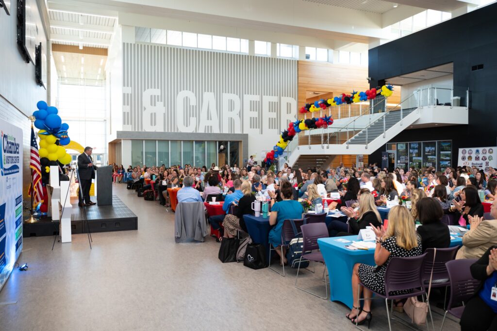 We were thrilled to be able to present and host our annual long-standing event at the Dr. Gene Burton College and Career Academy that allows us to welcome the new teachers and employees of Rockwall ISD last week! This tradition brings business leaders together to welcome them to not only the District, but our community as well. Thank you to these 400 SUPERHEROES who are educating our future leaders and shaping our community!